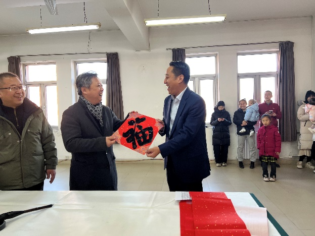 揭牌仪式结束后,来自天津书协、篆刻委员会以及宝坻区书协、篆刻家协会天津市书法家协会的艺术家们现场挥毫泼墨,为师生们书写春联和福字。吸引了学生以及在校教职工前来学习和体验。一幅幅寓意吉祥的春联和福字,不仅传递了新年的祝福,也展现了书法艺术的魅力。师生们纷纷围观,赞叹不已,并积极参与其中,体验书法的乐趣。