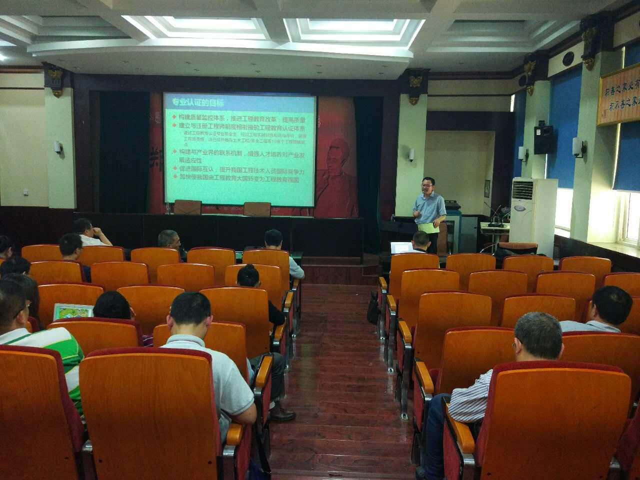 5月16日下午,开元集团官网入口在北区图书馆学术报告厅召开了计算机科学与技术工程教育专业认证专家报告会,特邀河南工业大学信息科学与工程学院副院长邓淼磊教授作专题报告。会议由开元集团官网入口院长刘卫光主持,开元集团官网入口全体教职工80余人参加了会议。