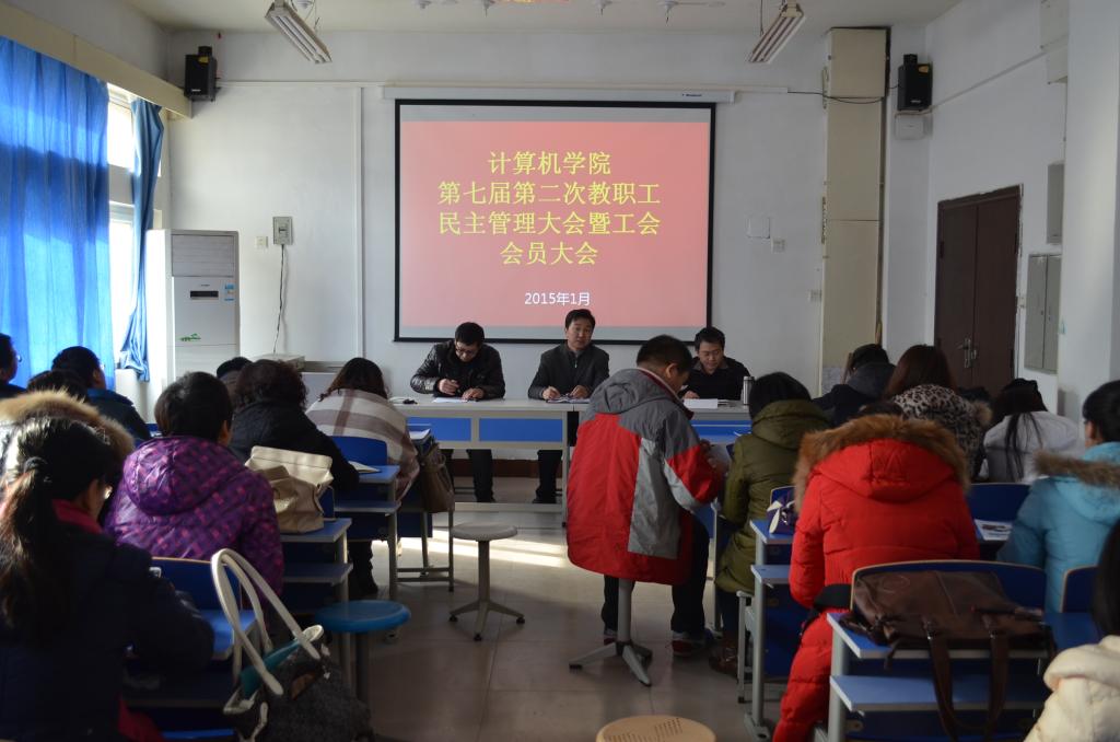 开元集团官网入口第十五届第二次教职工民主管理大会暨工会会员大会于2015年1月8日下午在8号楼524召开,开元集团官网入口党政领导及全体教职工参加。