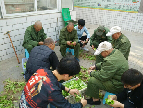 学生党员帮助老人择菜