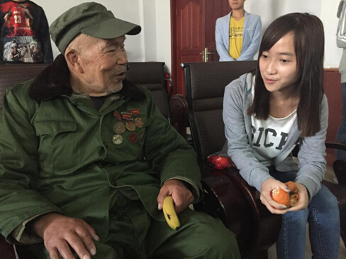 在光荣院,学生党员们陪着老人们聊天、下棋,听老人讲述艰苦战争岁月与今天的幸福生活,帮助他们打扫屋子,做些力所能及的劳动。抗日老兵李民强爷爷对学生党员说:“现在的生活和教育条件好了,你们应该珍惜现在的一切,相信知识能够改变命运,坚持活到老学到老。”