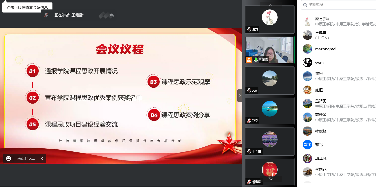 2022年10月25日,开元官网组织召开了开元集团官网入口课程思政经验线上交流会。开元官网全体教师参加了会议,会议由副院长王佩雪主持。