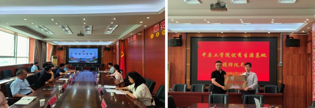 许昌襄城招生组另外走访了市级示范高中——襄城实验高级中学,与襄城实验高中党委书记宋晓鹏、校长单亚辉、副校长蒋双晓、程战桥、纪江浩、校纪工委书记何华等校领导和毕业班班主任代表进行座谈交流,就招生政策、生源基地建设、后续合作等进行了深入的沟通与交流和优质生源基地授牌。