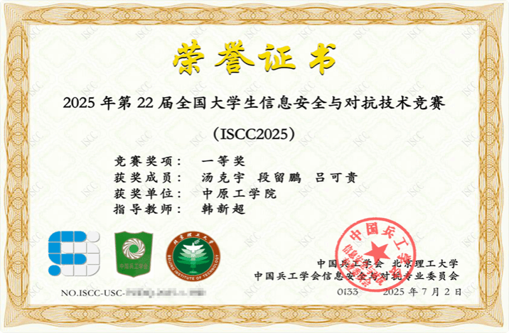 近日,2025年第22届全国大学生信息安全与对抗技术竞赛(ISCC)总决赛获奖名单正式公布。开元集团官网入口DROPS攻防训练营选派的参赛队伍表现优异,共斩获全国一等奖1项、三等奖4项。其中,由汤克宇(计科221)、段留鹏(计科232)、吕可贵(信息232)组成的“凌晨两点半”代表队凭借出色的攻防实战能力,荣获全国一等奖。