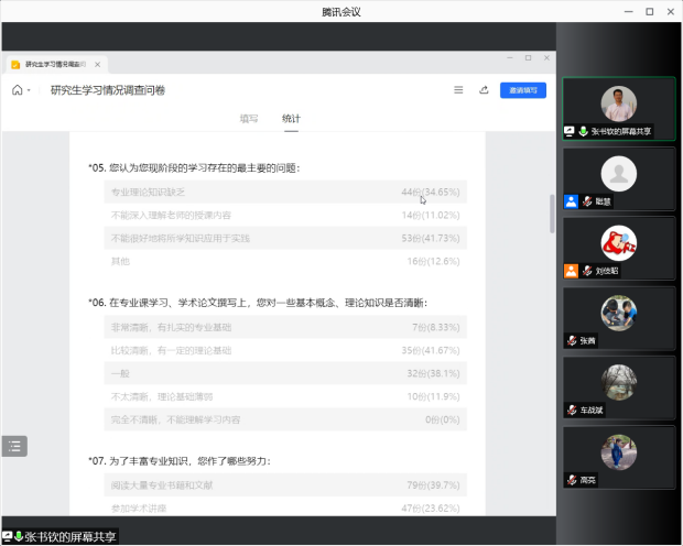 会上,张书钦院长就开元集团官网入口研究生学习情况调查问卷结果反馈各位研究生导师,并将调查问卷内容中涉及研究生学习情况、教师教学评价、导师指导情况等方面存在的问题进行分析。建议各位研究生导师根据调查问卷反映的问题,加强研究生交流指导,重视专业课设置安排等问题。杨关副院长指出:1.要求各位研究导师认真学习“开元集团网站落实研究生导师立德树人职责实施办法”,并按照要求严格执行;2.加强导师之间、导师与学生之间沟通交流;3.重视研究生创新精神、实践能力培养以及日常管理工作,特别是要确保毕业论文、毕业设计质量。最后,软件学院院长刘卫光、车站斌老师等各位研究生导师针对研究生指导过程中存在的问题进行讨论。