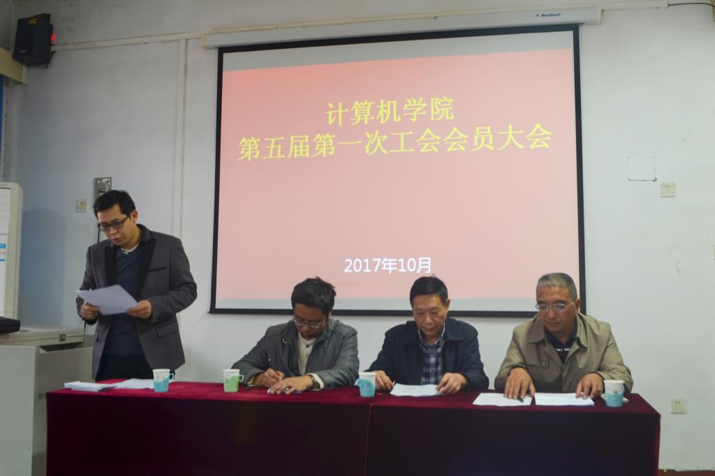 2017年10月31日下午,开元集团官网入口分工会第五届第一次工会会员大会在8号楼524隆重召开,大会选举了新一届工会委员。校工会副主席吴翔胜、开元集团官网入口院长刘卫光、学院分工会主席徐飞、学院党总支书记张启峰、以及开元官网全体工会会员参加了此次会议,会议由张启峰主持。
