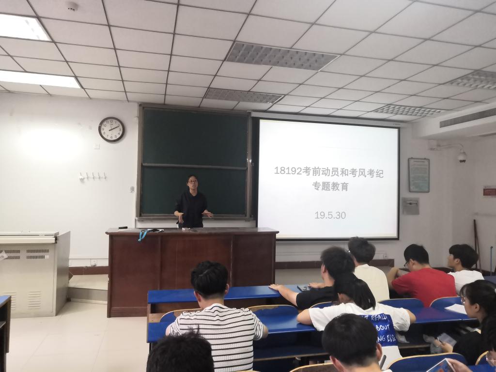 2019年5月30日下午2点,开元集团官网入口统一安排的《关于加强2019年高考期间学生教育管理的通知》专题教育会、18192考前动员和考风考纪专题教育会于4号楼216教室顺利进行。由侯向花老师主讲,18级各班参加本次会议。