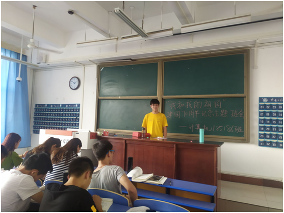 2019年8月底9月初,计算机三个年级的各班级分别召开了2019暑期社会实践分享暨“我和我的祖国”主题班会。