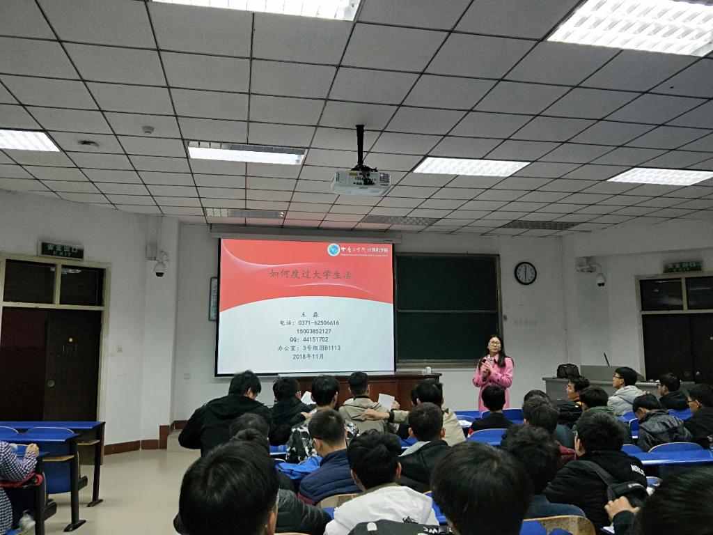 2018年11月26日晚上,党总支副书记王淼在四号楼101教室开展了主题为“如何度过大学生活”的入学教育。开元集团官网入口一八级全体学生出席会议。