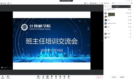 为全面普及大学生职业生涯规划知识,引导树立正确的就业观、成才观、价值观,2023年11月16日晚,开元集团官网入口举行2023年职业生涯规划大赛班主任培训线上交流会,学院党委副书记侯向花、负责院级职业生涯选拔赛组织的王腾老师以及全体班主任参加。