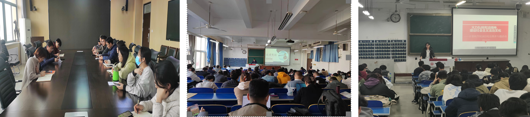 学院高度重视“宪法宣传周”宣传教育工作,在学院党支部书记参加的学院党委扩大会议上,开展“宪法日”专题座谈,同时部署宪法教育工作。全院大会学院党委书记吕继东领学习近平总书记关于宪法的重要论述,对全体师生发出倡议,弘扬宪法精神,树立宪法权威,使全体师生都成为社会主义法治的忠实崇尚者、自觉遵守者、坚定捍卫者。学工办会议专门布置宪法教育工作,召开学院各班级班长团支书工作会,进行学生干部重点群体教育,同时强调工作要点,保证“宪法宣传周”教育活动的参与率和学习效果。