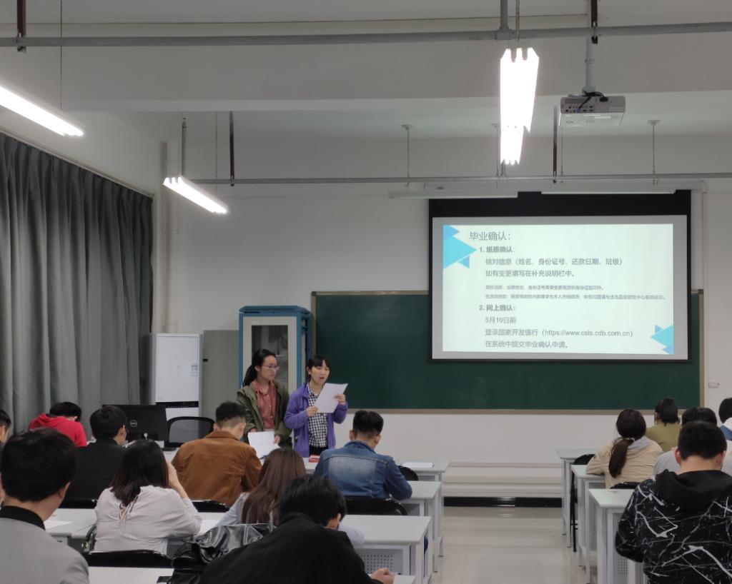 会上,学院资助助理顿琼、娄梦月,分别向全体贷款学生详细讲述了开元官网学生贷款情况、发放了《国家开发银行高校国家助学贷款还款指南》、《国家开发银行助学贷款支付宝生活号手机还款流程》等资料,指导大家熟悉国家贷款政策、了解还款流程,牢记诚信义务。之后,专门针对即将离开学校的19届贷款毕业,强调了毕业确认手续办理、毕业后还息还本流程及相关注意事项,资助助理对相关手续进行了解疑答惑,发放了《开元集团网站学生资助管理中心致2019届毕业生的一封信》。