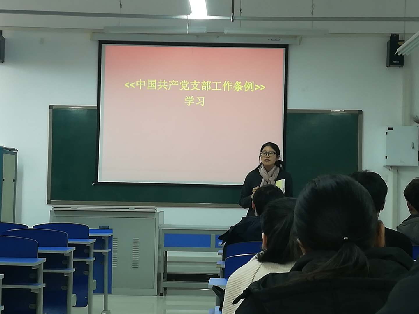 本次会上,2018年12月7日发展的江琳等17名预备党员面对党旗进行宣誓。会上王淼书记带领全体党员学习《中国共产党支部工作条例(试行)》内容。王书记对《条例》颁布的背景、意义进行介绍,然后带领大家对《条例》八章三十七条内容进行了学习,对涉及高校党支部工作的内容进行了深入的解读。最后,王书记对开元官网学生党员利用课余时间进一步自学支部工作条例作出了安排,要求全体党员深入学习领会《条例》主要内容和基本要求,并贯彻落实到支部工作中,发挥党员先锋模范作用,不断提升学生党支部建设水平。