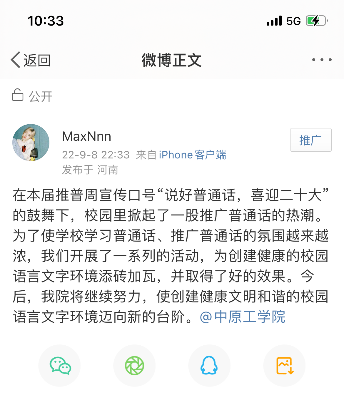 支部党员借助微博,发送“推广普通话,喜迎二十大”宣传语或活动感想,增强了宣传效果。