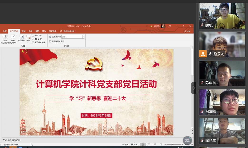 这次主题党日活动除一名党员同志因研究生复试请假外,其余党员同志全部参与,参与度高,内容丰富,形式活泼,内涵深刻,具有春风化雨,润物无声的作用,使支部全体党员党性修养得到进一步提高。大家一致认同:要牢记习总书记的谆谆教诲,深入学习贯彻习总书记回信相关精神,切实增强“四个意识”、坚定“四个自信”、做到“两个维护”。不负韶华、奋发有为,勇做走在时代前面的奋进者、开拓者、奉献者,努力使自己成为祖国建设的有用之才、栋梁之材,为实现中国梦奉献智慧和力量。