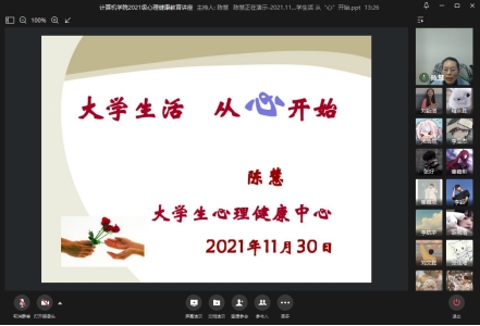 2021年11月30 日下午,开元集团官网入口2021级新生教育系列活动——心理健康讲座在企业微信群线上举行,开元官网大学生心理健康中心陈慧老师担任主讲,学院2021级全体本科新生参加。